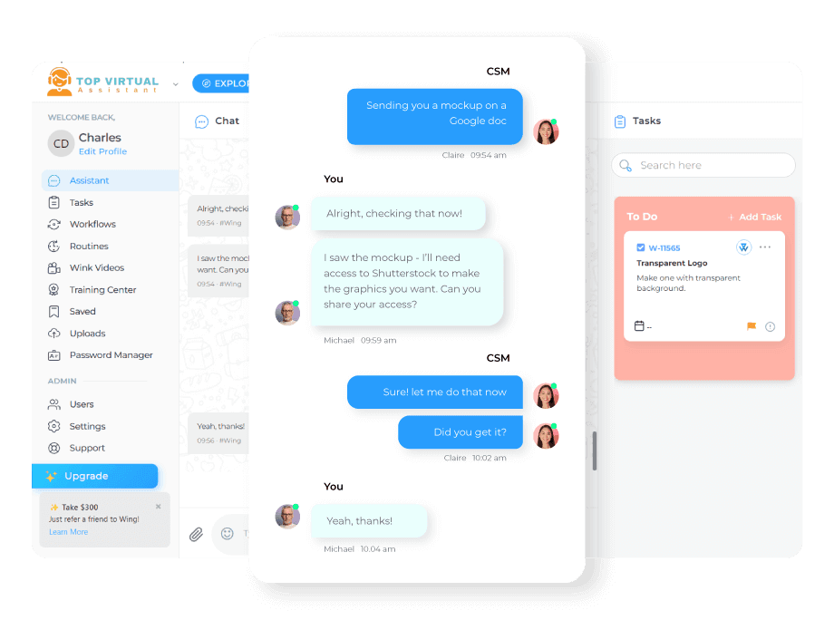 The Top Virtual Assistant Workspace™ app was built to help you communicate, delegate, train, and manage your team efficiently.